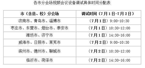 3.各分会场务必于7月1日前准备完毕。会议分会场正式测试时间为7月1日至2日,请根据各市测试时间安排(见附件2)与主会场进行联系并自行调试本会场的音视频和摄像效果。