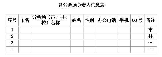 说明:1.请将市分会场技术人员填在第一行,并通知其按时参加技术人员培训会议;