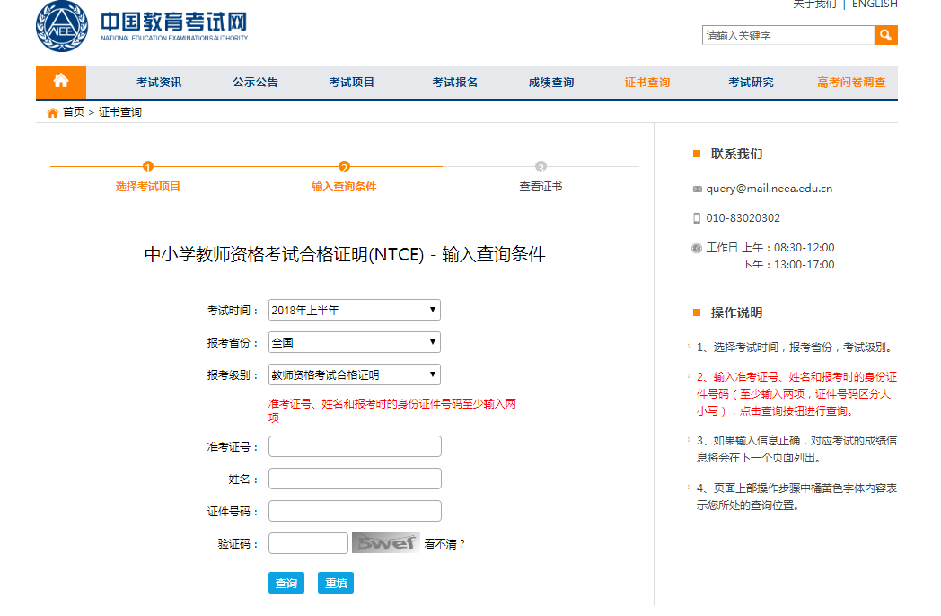 1、点击进入“教育部考试中心证书查询系统”,考试时间选择“20**年下半年”或“20**年上半年”,输入姓名、身份证号、验证码(准考证号可不输入)。