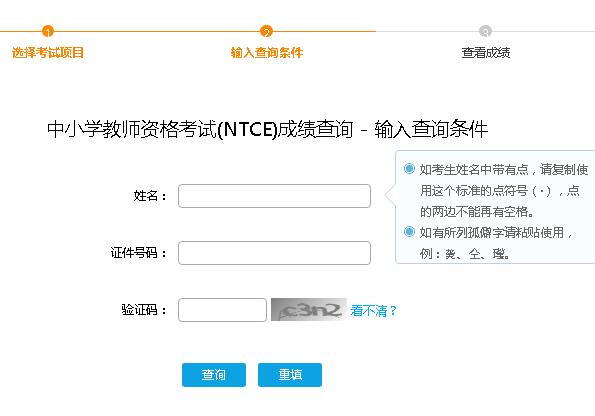 考生登录中小学教师资格证考试网(http://ntce.neea.edu.cn/),在考试服务栏目中找到成绩查询按钮,输入姓名和证件号码,填写完验证码,点击查询按钮就可以查看到考试项目所得成绩。