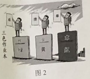 漫画中,某校根据学生学习状况,设计了红黄绿难易不同的三色作业本... (2分)