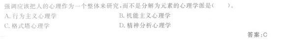 理论主张:反对把意识分解为元素,强调心理作为一个整体、一种组织的意义。