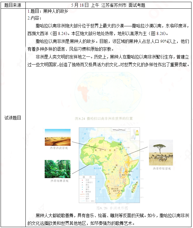 2019年上半年山东教师资格证初中地理面试试讲真题:《黑种人的故乡》