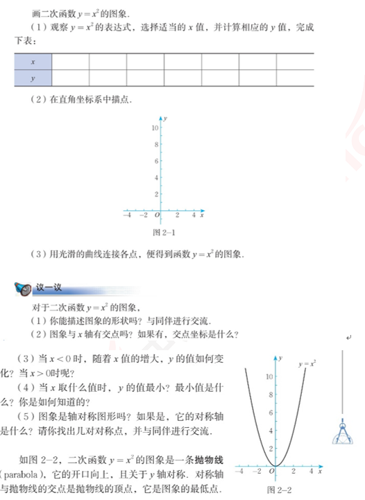 (1)掌握五点作图法的画图方法,能根据图象理解二次函数的性质;
