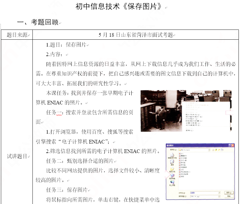 2019上半年山东教师资格证初中信息技术面试试讲真题:《保持图片》