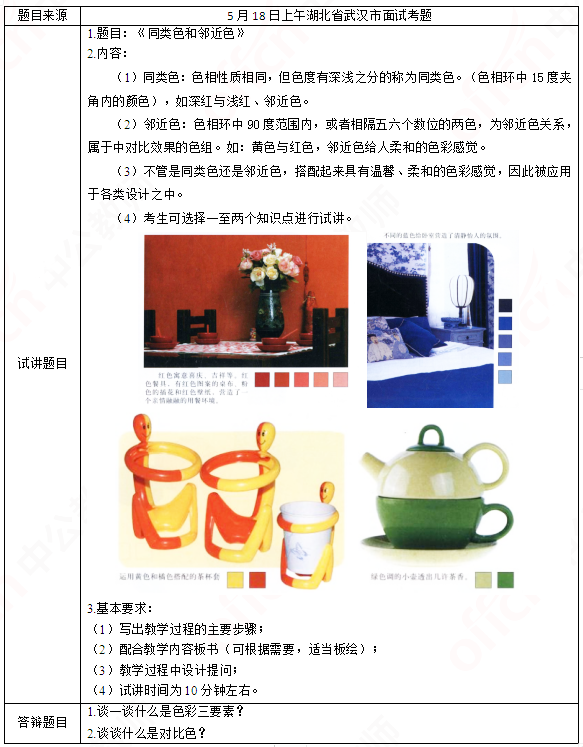 2019上半年山东教师资格证初中美术面试试讲真题:《同类色和邻近色》
