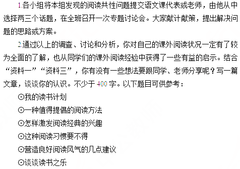 总结:看来,我们课外阅读的情况不容乐观,我们一起来集思广益,看看如何培养课外阅读兴趣。