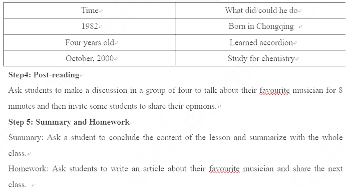 (3)针对该语篇的内容,设计相应的阅读教学活动。