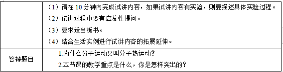 2019上半年山东教师资格证初中物理面试试讲真题:《分子热运动》