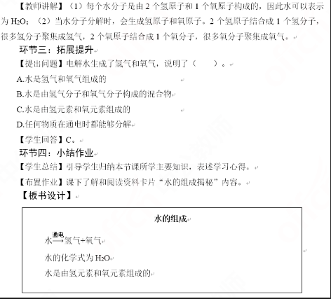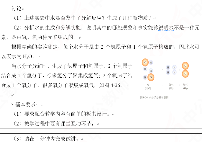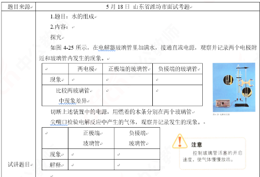 2019上半年山东教师资格证初中化学面试试讲真题:《水的组成》