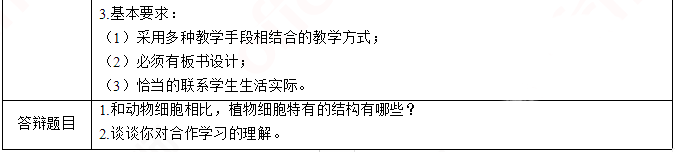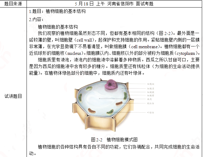 2019上半年山东教师资格证初中生物面试试讲真题:《植物细胞的基本结构》