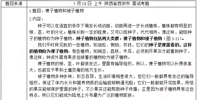 2019上半年山东教师资格证初中生物面试试讲真题:《裸子植物和被子植物》
