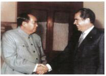 教师引导设疑:历史上尼克松和周恩来总理历史性的握手,使得中美关系走近了一步,他也因此成为“最有中国缘的美国总统”,大家知道中美关系在当时是怎样的吗?除了美国,中国和日本的关系又如何呢?由此顺势导入新课。