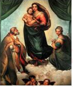2.教师出示中世纪时期的圣母像与《西斯廷圣母》像,引导学生进行比较。