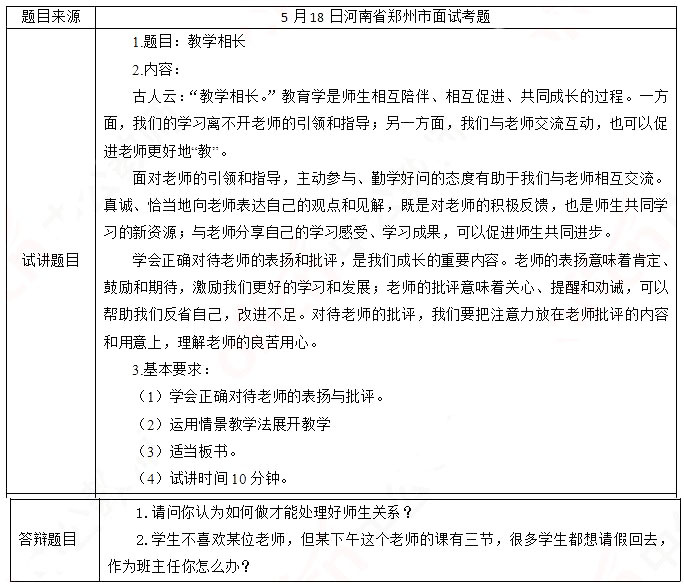 2019上半年山东教师资格证初中政治面试试讲真题:《教学相长》