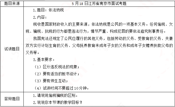 2019上半年山东教师资格证初中政治面试试讲真题:《依法纳税》