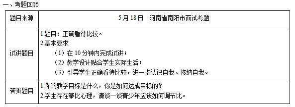 2019上半年山东教师资格证初中心理健康面试试讲真题:《正确看待比较》