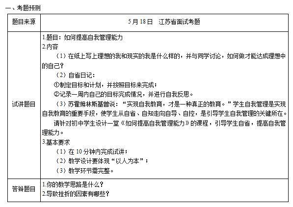 2019上半年山东教师资格证初中心理健康面试试讲真题:《如何提高自我管理能力》
