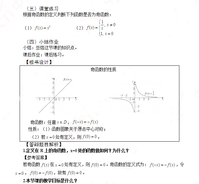 2019上半年山东教师资格证高中数学面试试讲真题:《奇函数的性质》