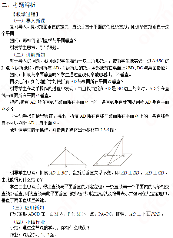 2019上半年山东教师资格证高中数学面试试讲真题:《线面垂直的判定》