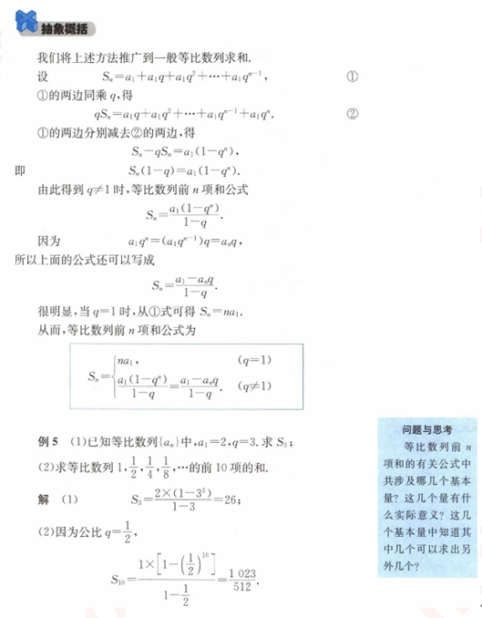 复习等差数列前n项和公式。提问:等比数列前n项和怎么求呢?有没有相应的公式呢?
