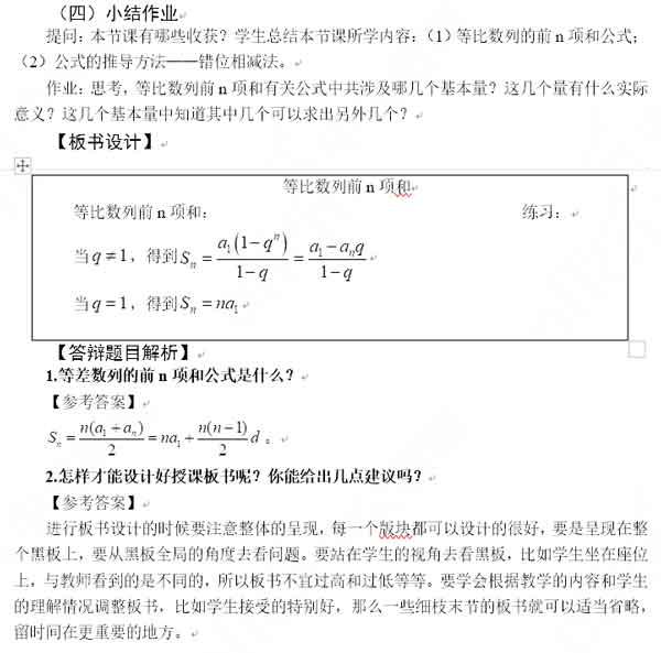 2019上半年山东教师资格证高中数学面试试讲真题:《等比数列前n项和》