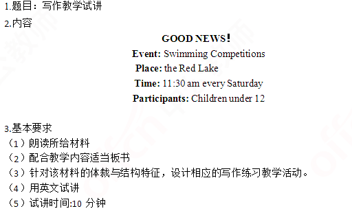 2019上半年山东教师资格证高中英语面试试讲真题:写作教学试讲