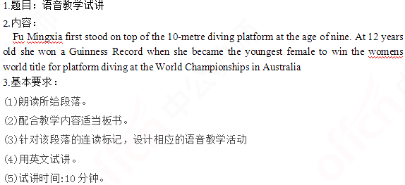 2019上半年山东教师资格证高中英语面试试讲真题:语音教学试讲