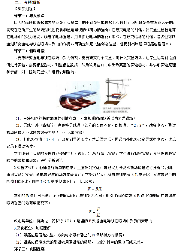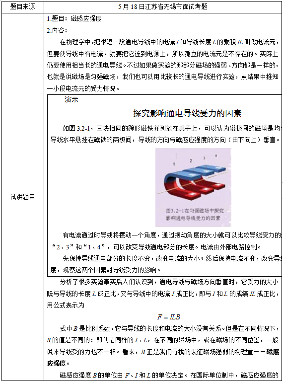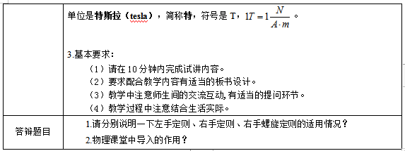 2019上半年山东教师资格证高中物理面试试讲真题:《磁感应强度》