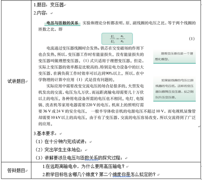 2019上半年山东教师资格证高中物理面试试讲真题:《变压器》