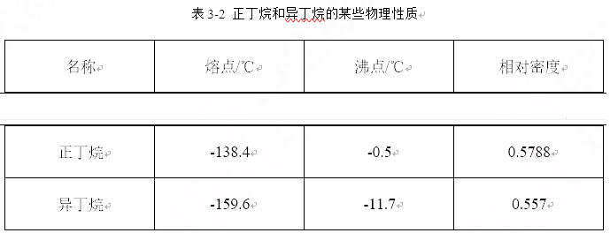 【提出问题】正丁烷和异丁烷在性质方面有哪些差异呢?结合表格3-2。归纳一下不同点。