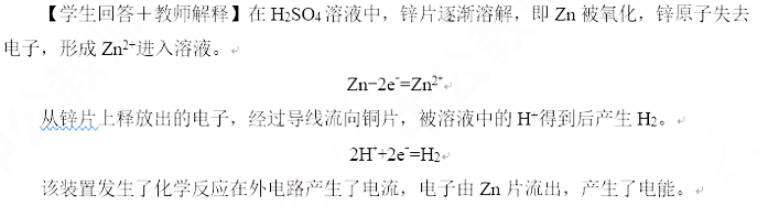 【提出问题】为什么会有电流产生?锌片和铜片上分别发生了什么反应,如何表示?