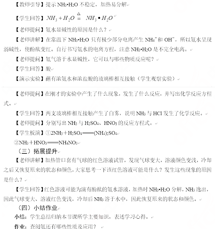 【老师提问】氨气溶于水的同时,是否能与水发生反应。(引导学生利用喷泉实验验证)