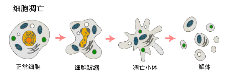 展示细胞凋亡的过程,讲解这是一种不引发炎症,不表现细胞膨胀和细胞崩溃等细胞坏死的典型性状,而只出现细胞核浓缩、细胞自身DNA发生断裂等现象的过程。
