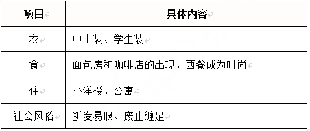 学生回答,教师组织总结:还未打开国门的中国,物质文化生活于社会习俗多沿袭传统。平民百姓住着普通民居,粗食布衣,都是中国自产棉布、丝绸缝制。
