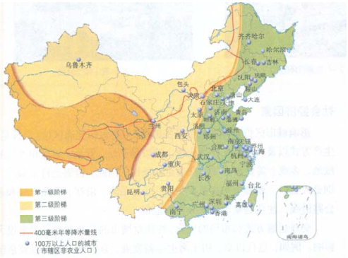 ②气候:中纬沿海地区具备适度气温和降水,是城市密集分布地区。