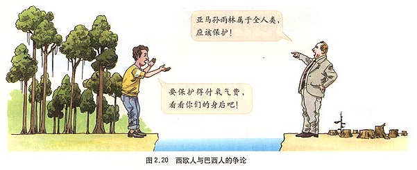 综上所述,亚马孙雨林对于人类以及人类赖以生存的全球环境来说,其影响可谓至关重要。从某种意义上讲,亚马孙雨林不仅属于当地国家,也为全人类所共有。而保护好亚马孙热带雨林,则是当地对于全人类所作的最大贡献。正是基于这样的原因,亚马孙地区大规模开发计划引起了国际社会的担忧,尤其是来自发达国家的指责(图2.20)。
