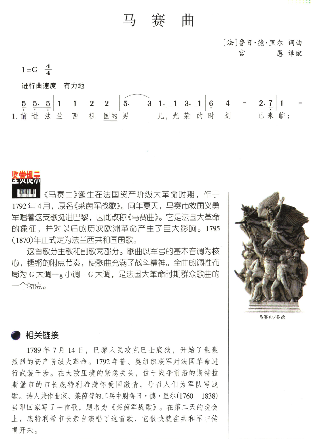 《马赛曲》的调式:G大调—g小调—G大调,节奏:多为附点音符