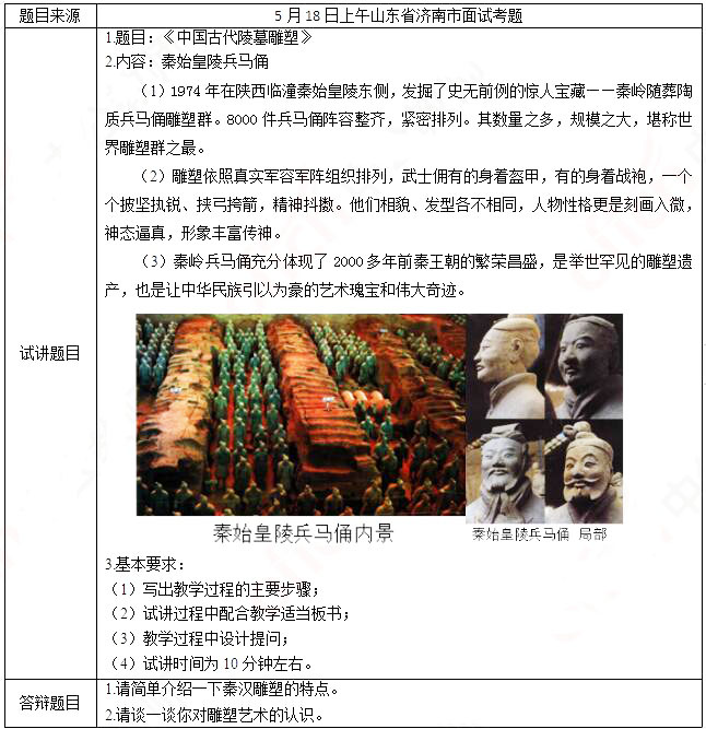 2019上半年山东教师资格证高中美术面试试讲真题:《中国古代陵墓雕塑》