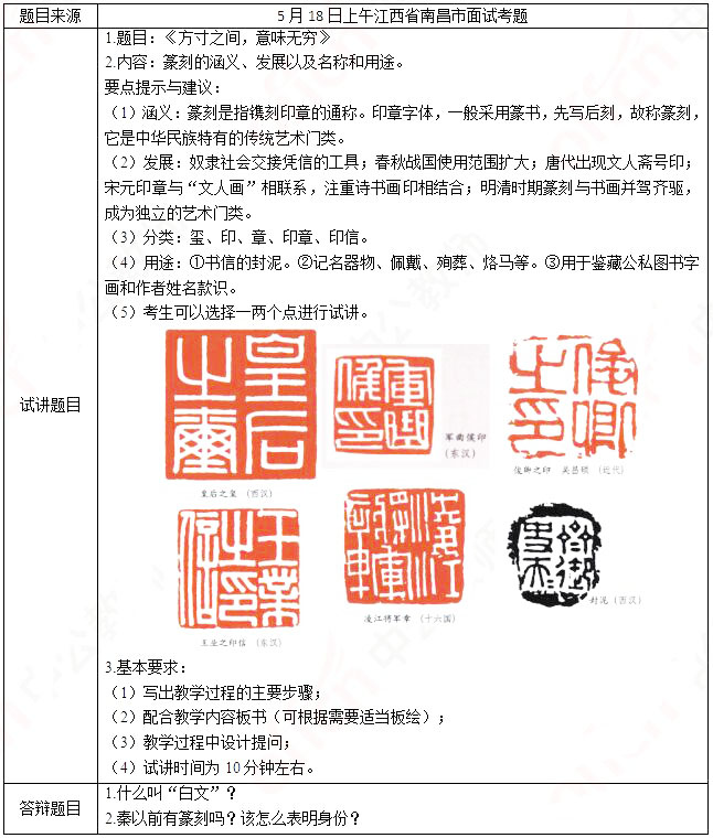 2019上半年山东教师资格证高中美术面试试讲真题:《方寸之间,意义无穷》