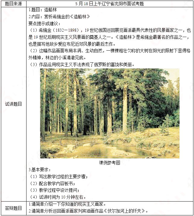 2019上半年山东教师资格证高中美术面试试讲真题:《造船林》