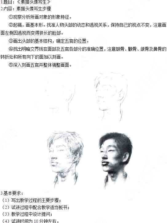 2019上半年山东教师资格证高中美术面试试讲真题:《素描头像写生》