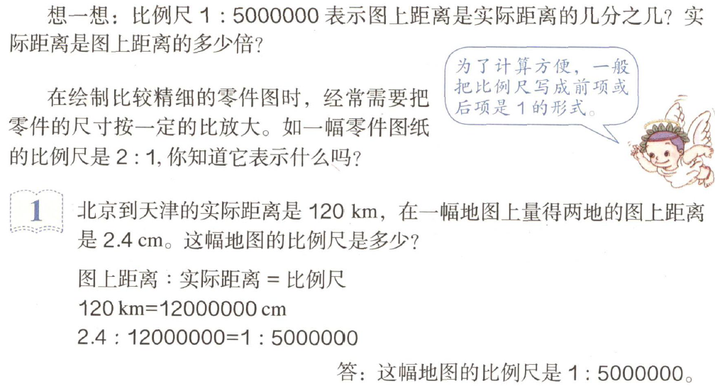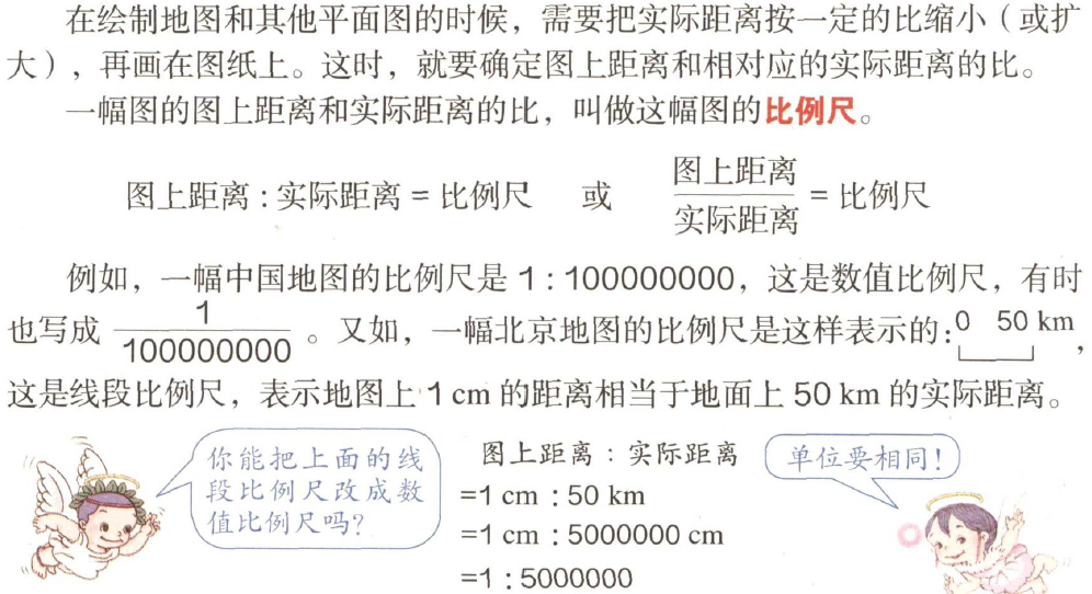 教师给出定义:一幅图的图上距离和实际距离的比,叫做这幅图的比例尺。