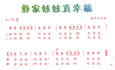 教师总结:歌曲旋律较为欢快,描绘了一幅彝家姑娘欢庆节日的场景。
