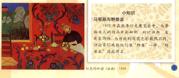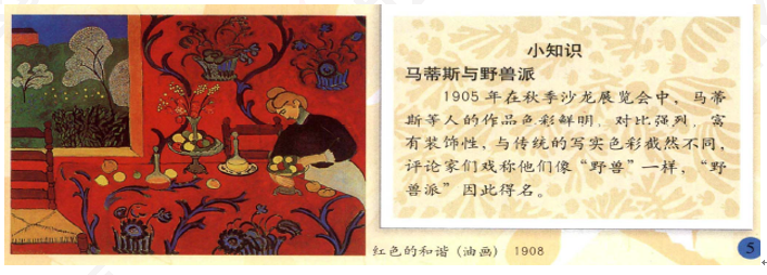 教师总结,这幅画是野兽派的代表作,很强的视觉冲击力也是野兽派这一流派的特征。
