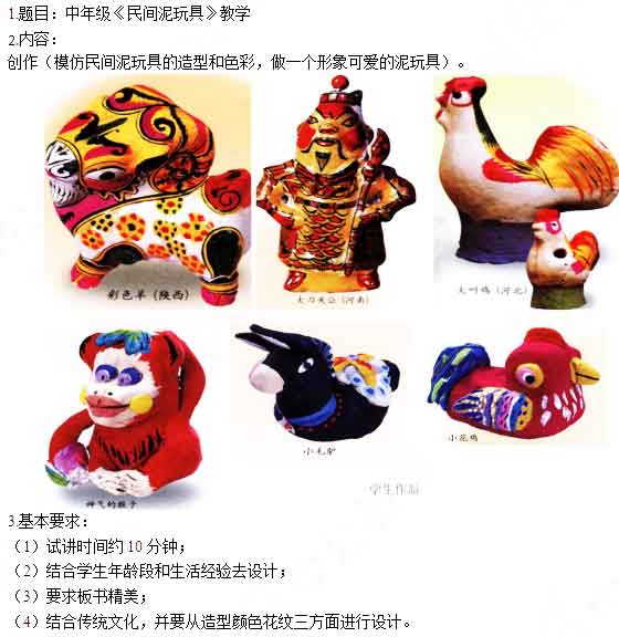 2019年上半年山东教师资格证小学美术面试试讲真题:《民间泥玩具》