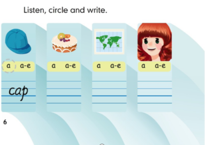 4. Conclude the rules of “a”. Tell them that when they see “a” in the structure a_e of a word , they should pronounce [ei].
