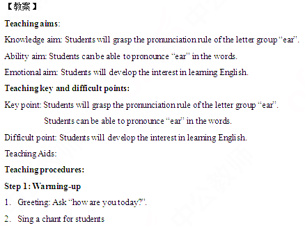 3. Conclude the pronunciation rule of “ear”. Tell them that when they see “ear” in a word, in most cases, they sound same. Also I will remind them the right pronunciation again. And ask them to read the letter group “ear” and the words three times.