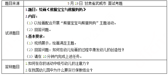 2019上半年幼儿教师资格证面试试讲真题:绘画《熊猫宝宝与熊猫妈妈》