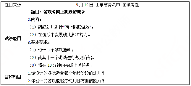 2019上半年幼儿教师资格证面试试讲真题:游戏《向上跳跃游戏》